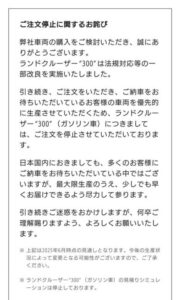プラドという車を手放すのは簡単な決断ではありませんし、ランクル300の受注再開がいつになるかも分かりません。